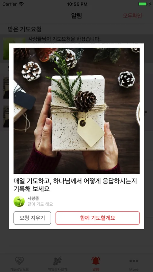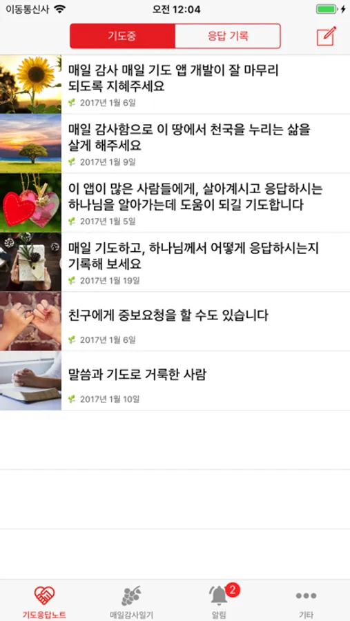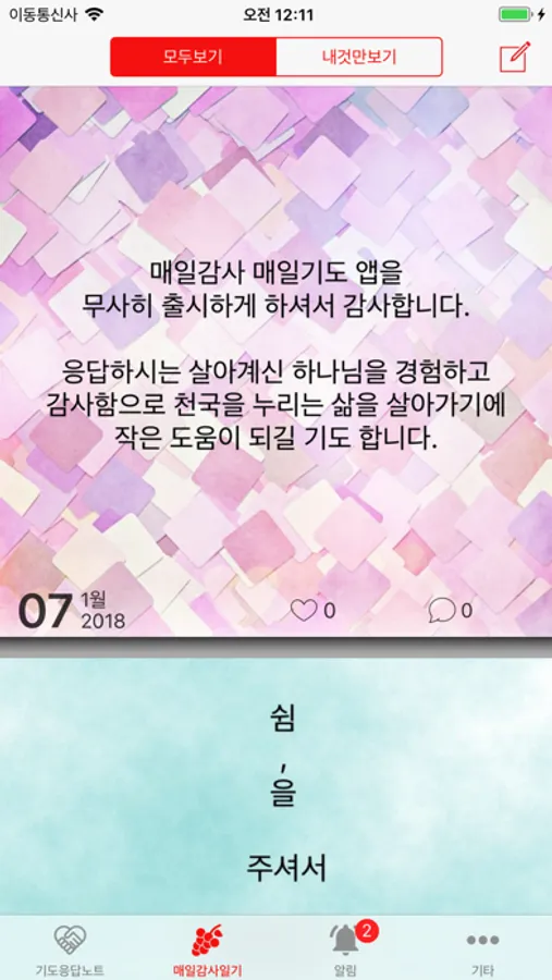 다른 사람의 감사를 보기만 해도 감사가 되는 앱입니다.