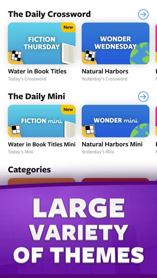 Wake up to two brand new crosswords every morning on a unique theme. Our daily crosswords are based on themes never before seen in the app and are a perfect way to add some stimulating fun to your day.