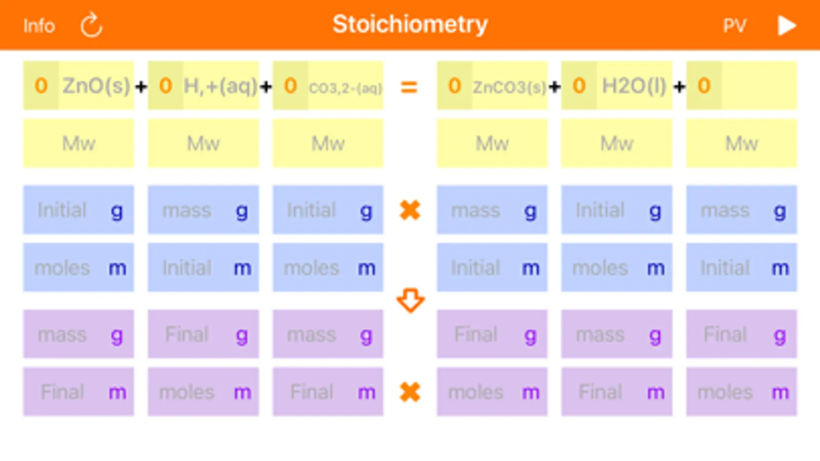 Stoichiometry is an ultimate tool for balancing chemical reactions, finding molar masses, moles and actual masses of reactants and products based on their chemical formulas, stoichiometric coefficients and any quantitative data provided, that available on Apple Store for iOS and Mac .