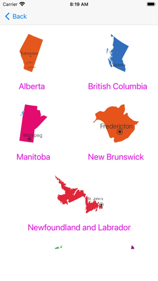 You can locate provinces and territories on a contour map, match the names of provinces and territories with their capitals, spell names of administrative units of Canada. There is also a quiz mode where you can test your knowledge of Canada administrative structure.
