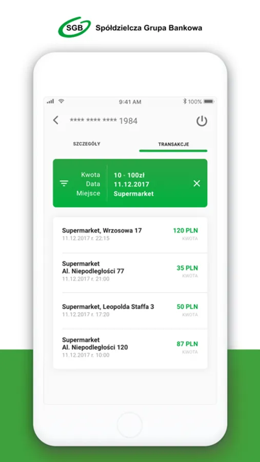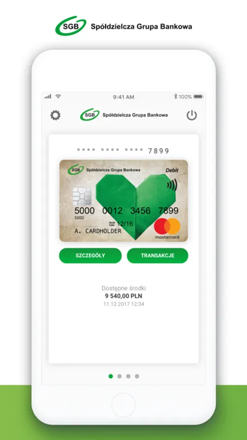 - możliwość dodania w aplikacji każdej karty płatniczej wydanej w Banku należącym do Spółdzielczej Grupy Bankowej możliwość sprawdzenia środków dostępnych dla karty