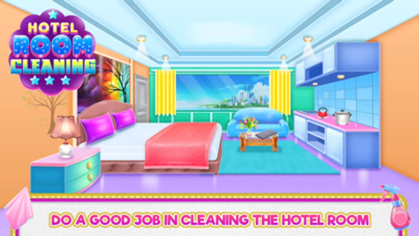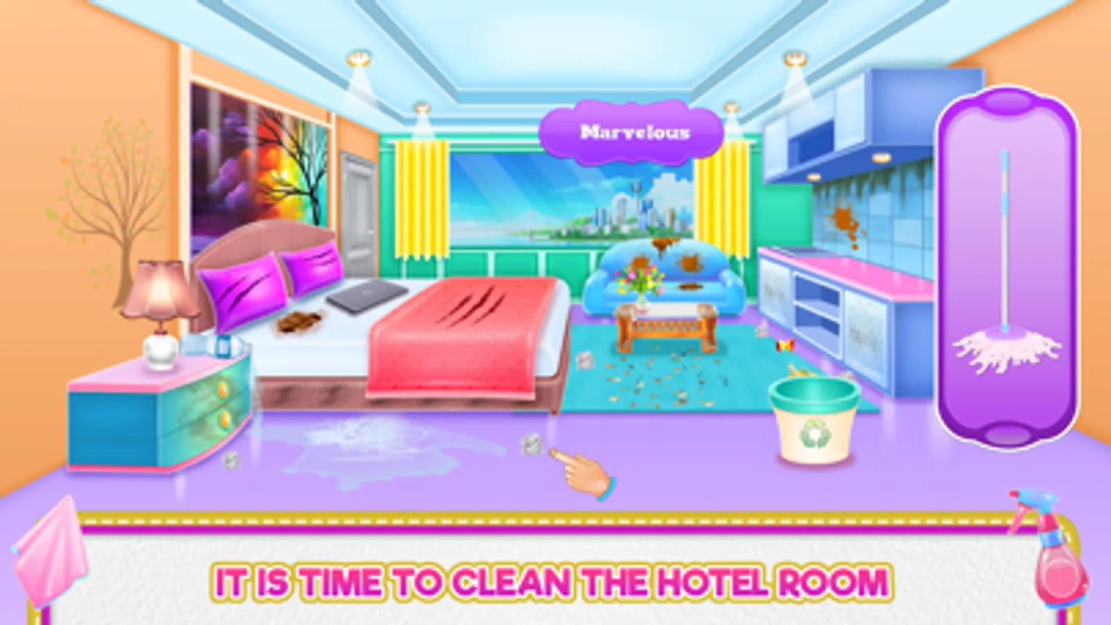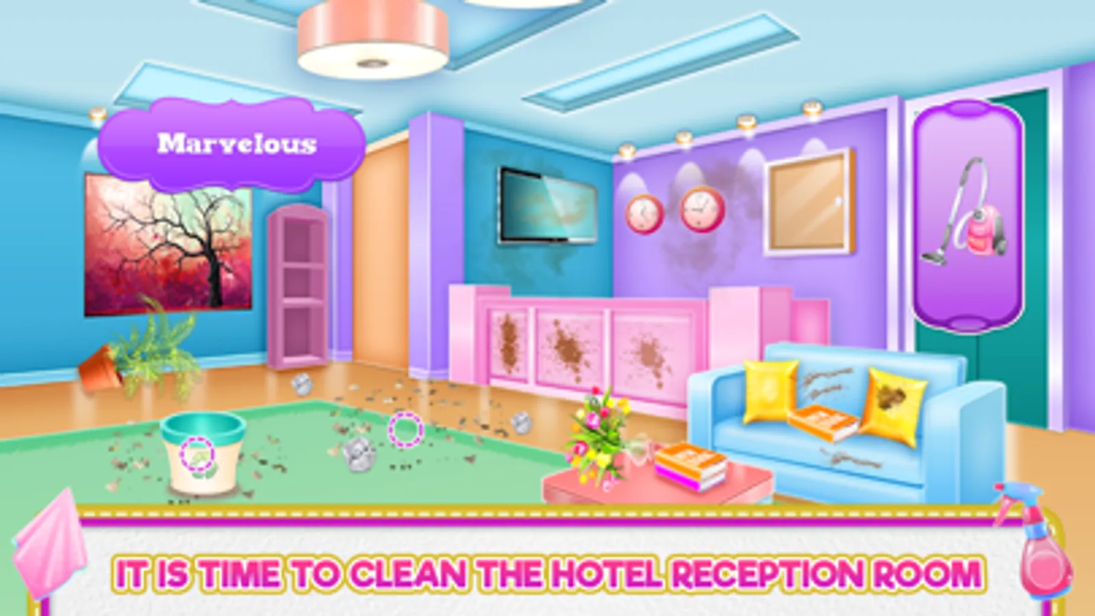 Another provocation that we would like to present to you is the one where you are a hotel manager that needs to look after his business in order to not stain his reputation. Your job in this cleaning game is to make sure you get rid of this mess trying to refresh the design of these hotel's rooms with some tricks and different styles. First is the reception room and then you will have to make sure you clean one of the hotel's room. The other things you have to do are: to get rid of the garbage, to collect it and place it in the trash can, to wash the carpet and make sure you donít see any footprints over there, to wash the tv and then to wipe it, to erase the spiderís web and the dust. There are a lot of stains you need to get rid of and in order to clean the place you will use different devices like a vacuum cleaner or the special spray with that napkin. Once the reception is done you will go to the room to ensure that the standards are accomplished for your level. Get those stains away and clean the mini kitchen with proper tools. Equip it and place the missing things in the right spot. The bathroom needs your touch too. Wash the bath tube, refresh the toilet and do not forget about the sink. The walls and the floor must be sprayed as well as the mirror. In the room there are many things that needs to be repaired and you will use your already gained skills to do as it says. Now you can clean like a professional anywhere and your work will be rewarded.