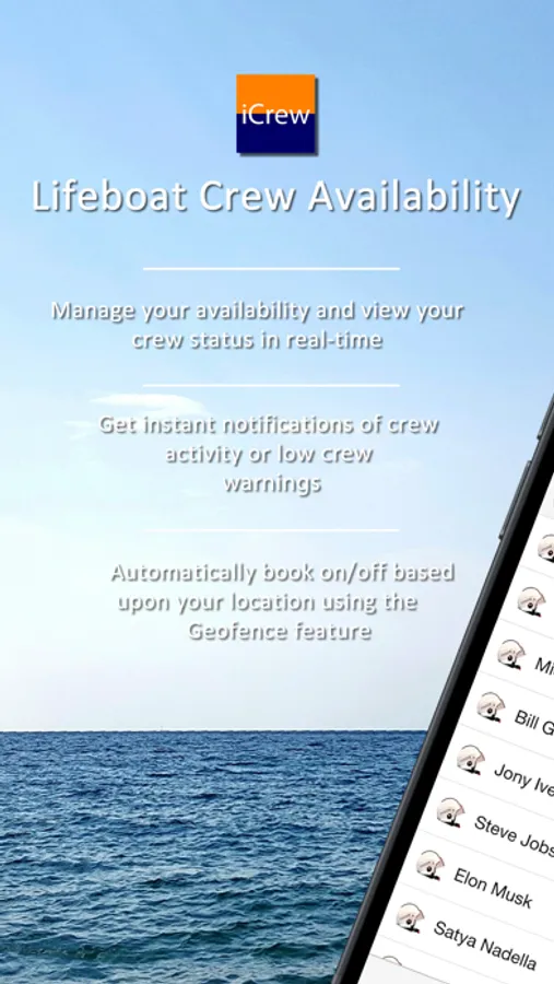 iCrew has been designed to provide lifeboat crews with a real-time team availability information & allowing them to book on/off quickly and easily.