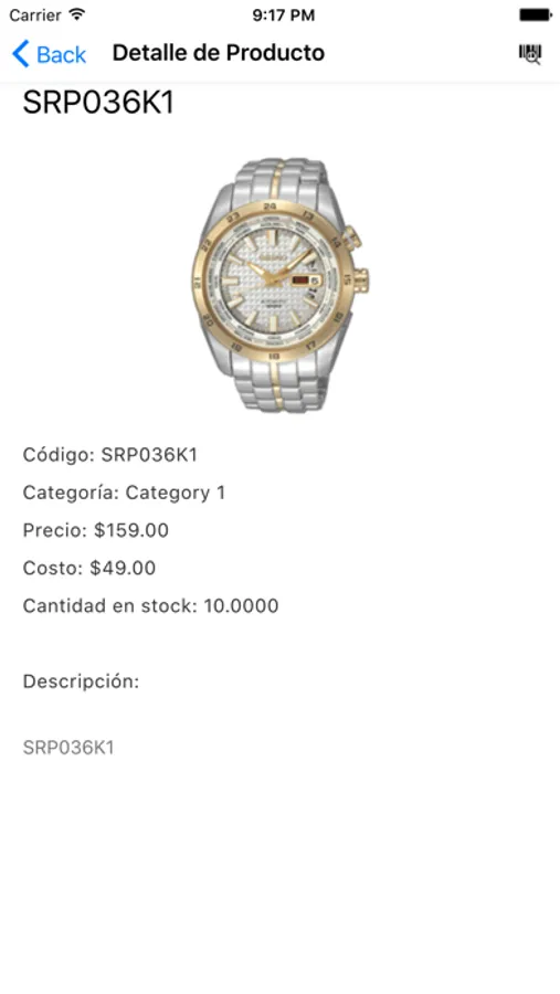 App utilizado para revisar el inventario del sitio web Vende tu Stock