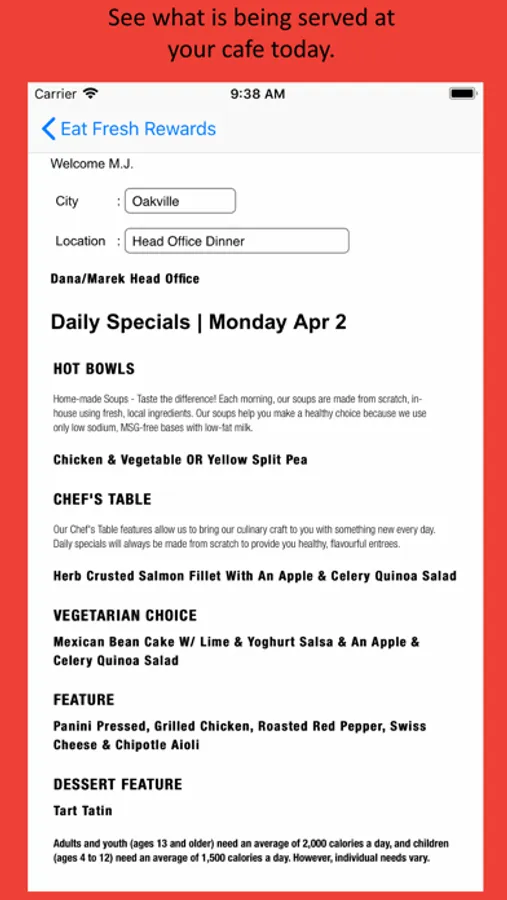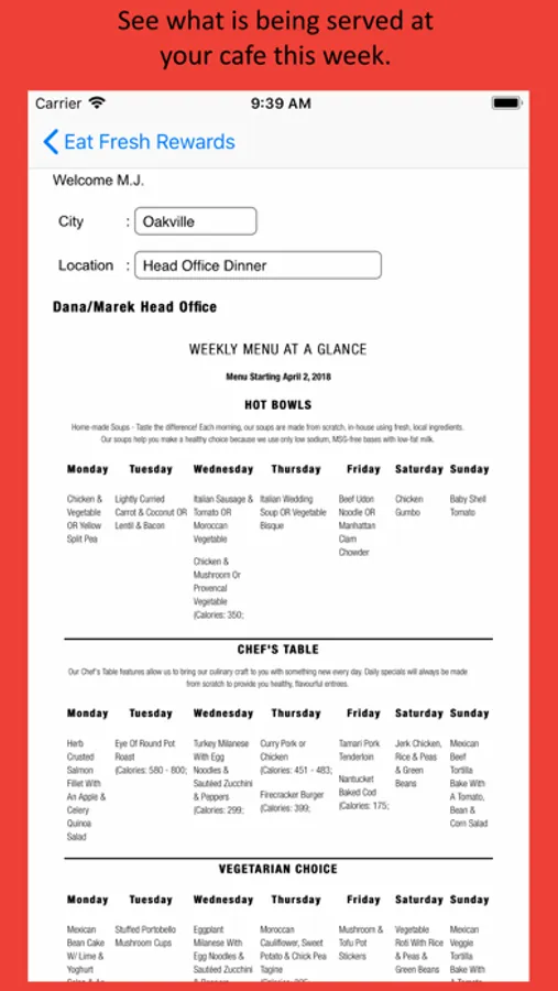 Preview the daily and weekly menus at your location.