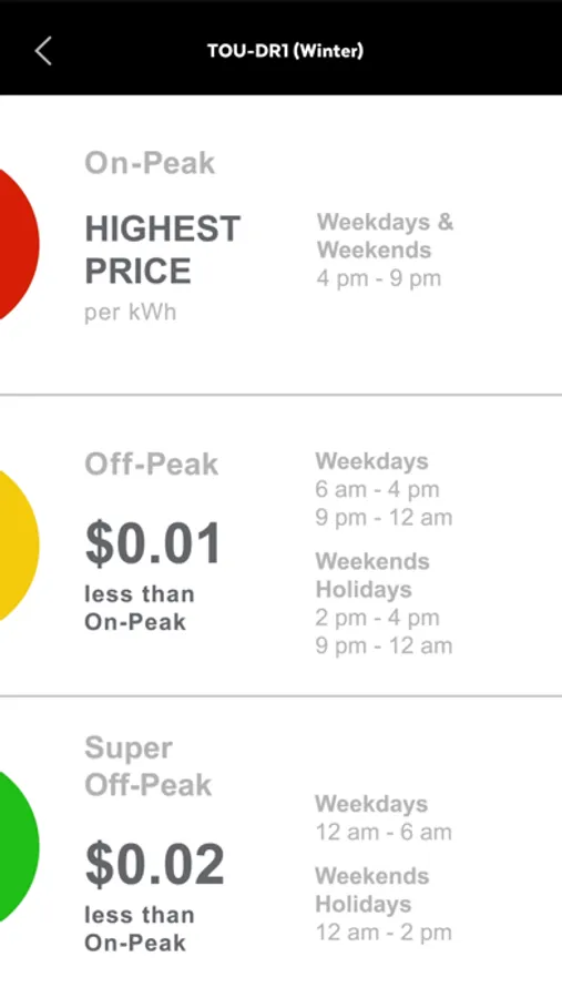 The Peek app and monitor display your current electricity price tier, making it easy to shift your electricity usage to when it’s cheaper. Peek is clear, super simple and easy to use.