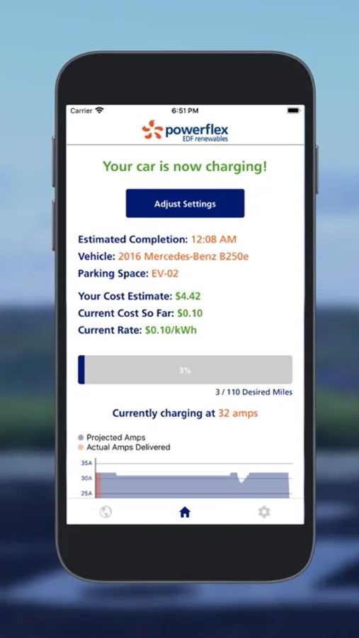 The PowerFlex app enables you to specify your EV energy demand at PowerFlex Adaptive Charging Stations. Use the app to remotely monitor your charging status as well and update your energy demand at any time should your plans change.