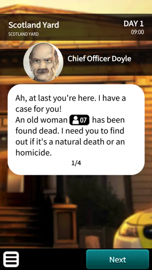 Launch the app, select the scenario you want to play, and reveal a story built from your choices as you pursue your goal: uncover the clues behind the crime, chase the evidence, and find the killer as quickly as possible.