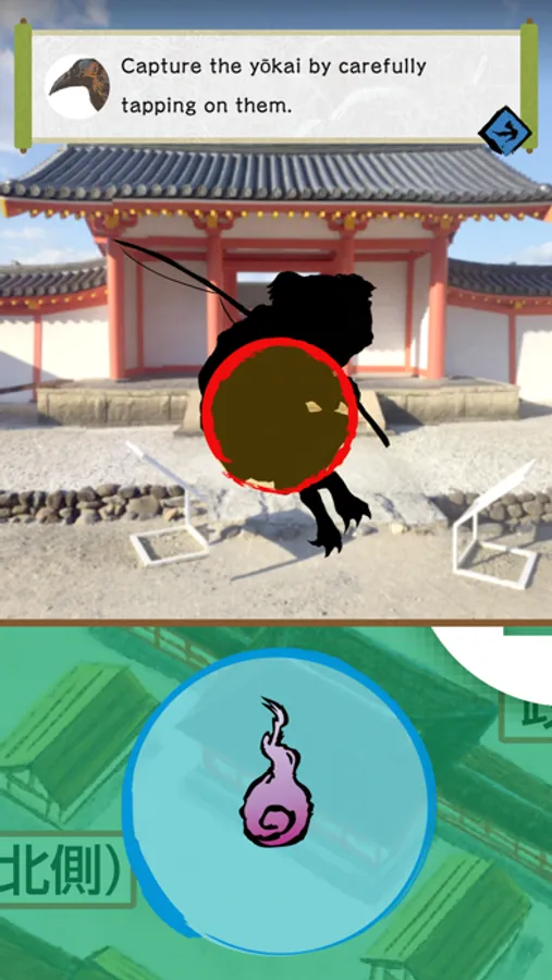 “Yōkai Hunt” is an AR app that you can enjoy while walking around Esashi-Fujiwara Heritage Park.
