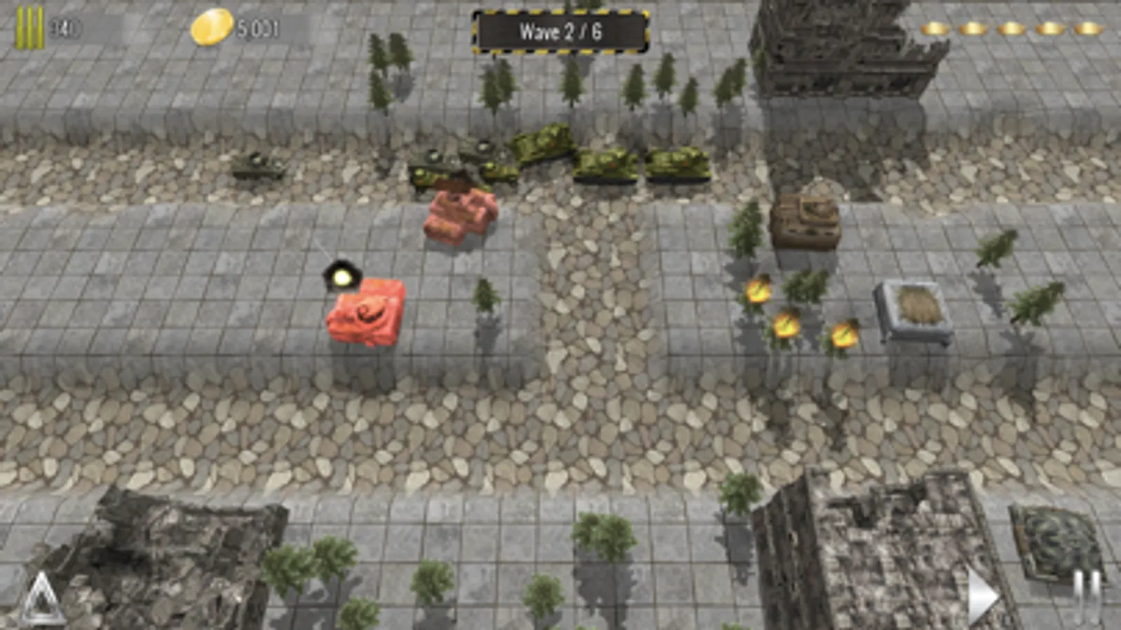 - 6 types of upgradable towers, Machine Gun tower, Cannon Tower, Radar Tower, Anti-Aircraft Tower, Flame-Thrower Tower and Howitzer-Rocket Tower.