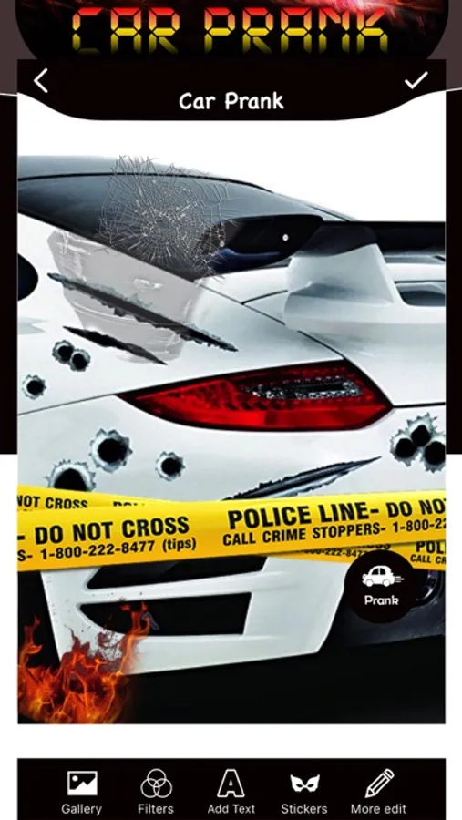 Car Prank Damaged Editor is an application that all you pranksters at heart will appreciate. Use this app to trick anyone into thinking their car has been damaged.