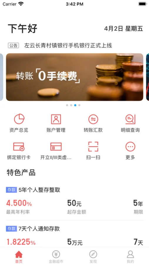 手机银行为您提供账户查询、账户管理、行内转账、跨行转账、本人账户互转、活期转定期、定期转活期、通知存款开立、通知存款支取等丰富的移动金融服务。