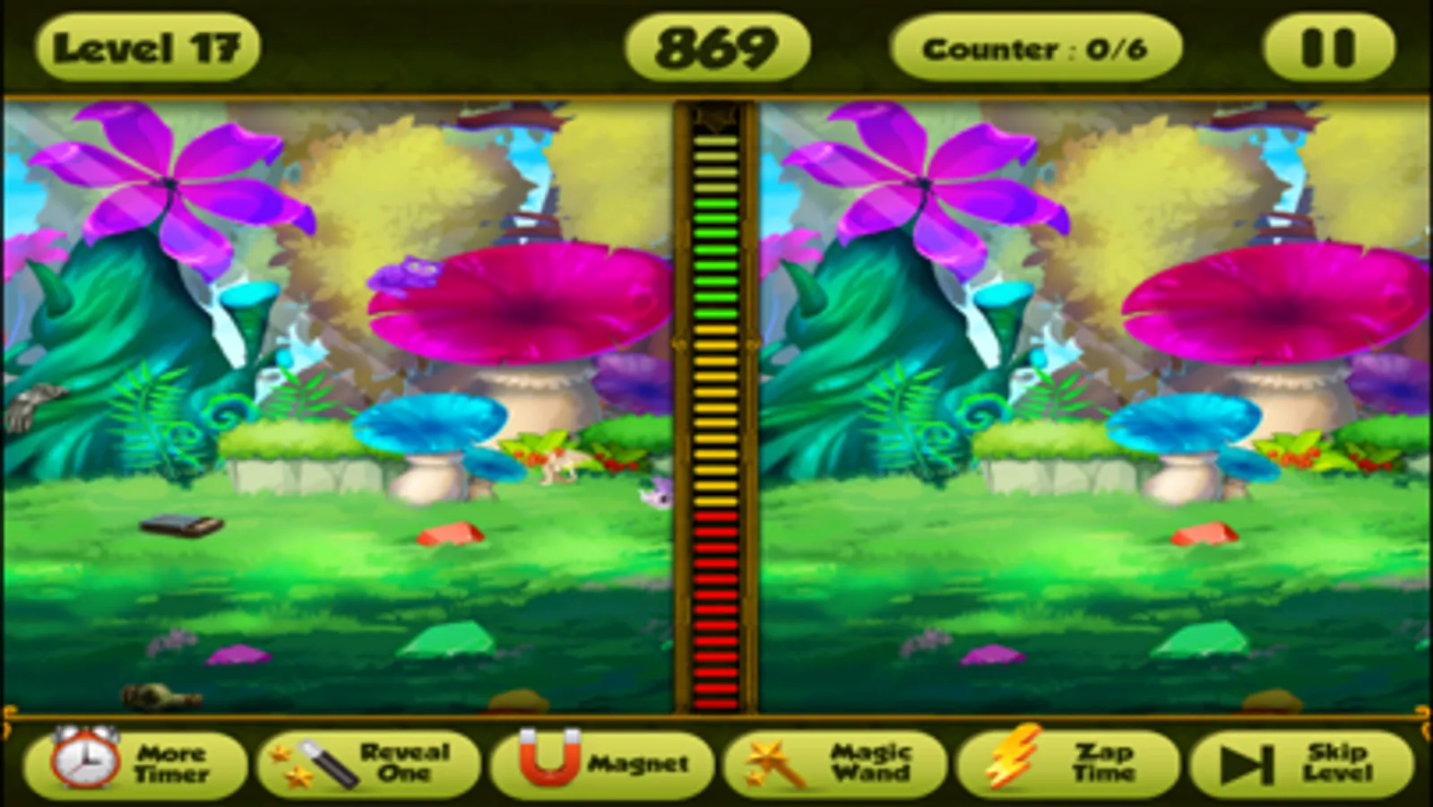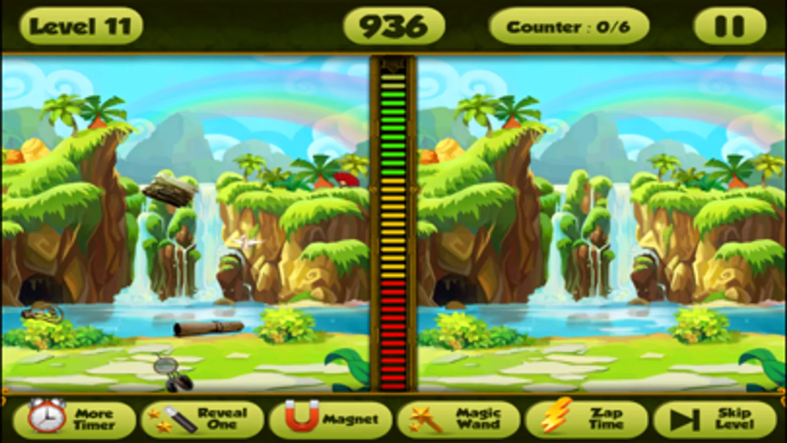 في كل مرحلة سنبحث عن الأختلافات الموجودة بين الصورتين مع أعطاء الوقت الكافي والمساعدات التي يحويها السطر اللذي في اسفل الشاشة .