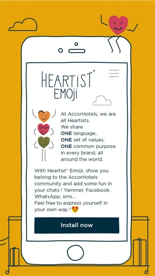With Heartist® Emoji, show you belong to the AccorHotels community and add some heartist® stickers in your chats ! Yammer, Facebook, WhatsApp, sms…