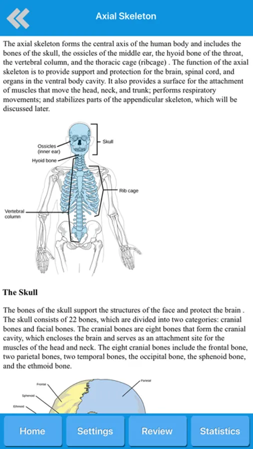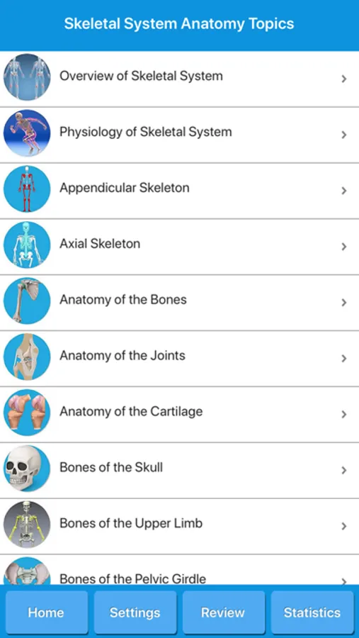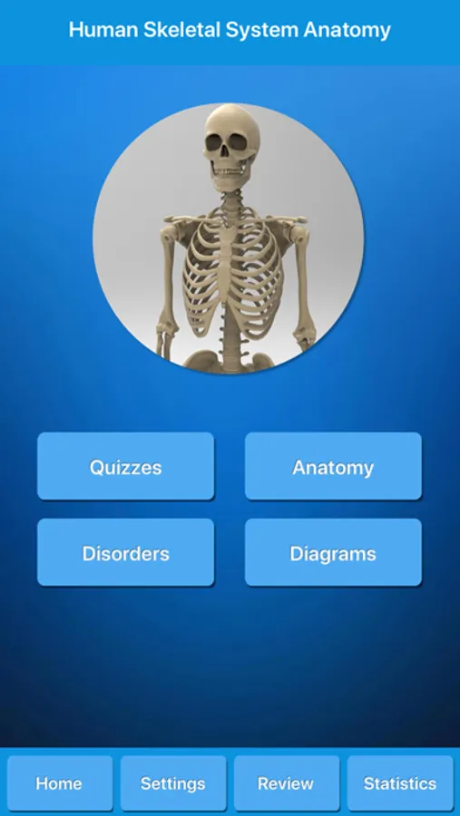 Get skeletal anatomy, common diseases, skeleton diagrams and quizzes. This app is suitable for students and for everybody willing to learn more knowledge about human skeletal system, or even for medical professionals, nurses and teachers.