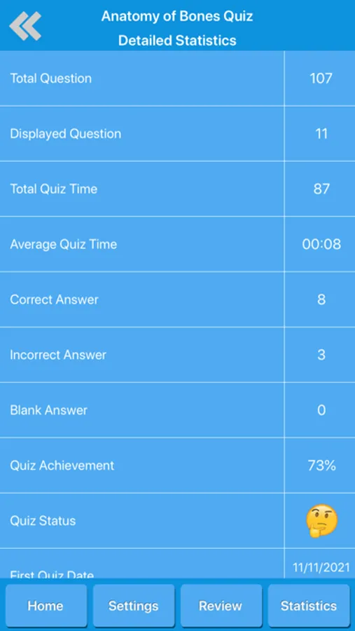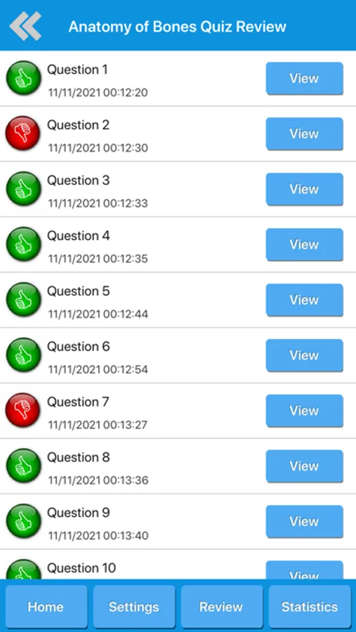 - Review your displayed quiz questions history.