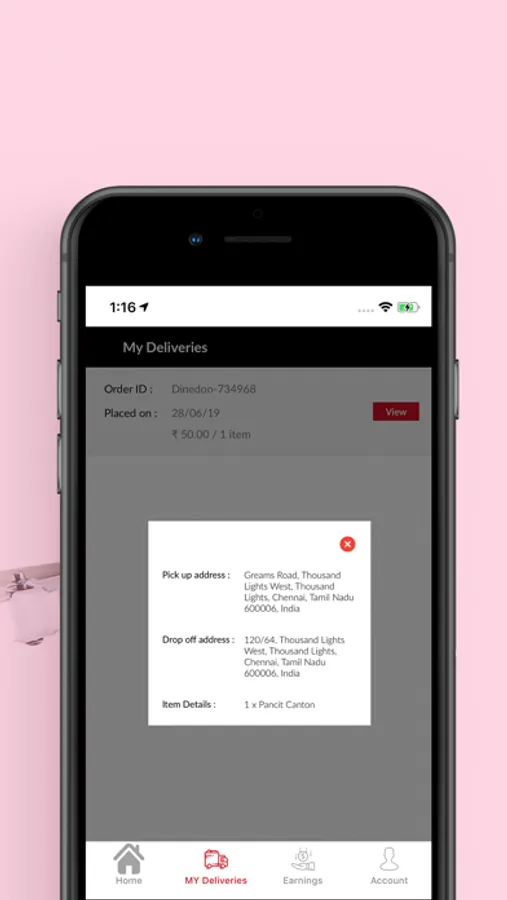 Dinedoo partner app is designed in such a way to simplifying the process of accepting the orders from the users. Using this app the partners could sign up and accept the orders from the users, pick the ordered food from restaurant, delivered to the users and get paid from the site owner