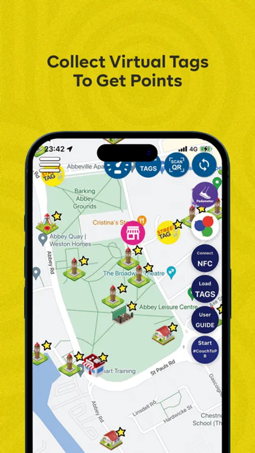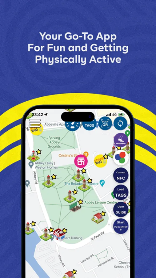 Walk, Run or Cycle and Earn Rewards by scanning virtual tags found in locations around your community/streets, local parks, and landmarks.