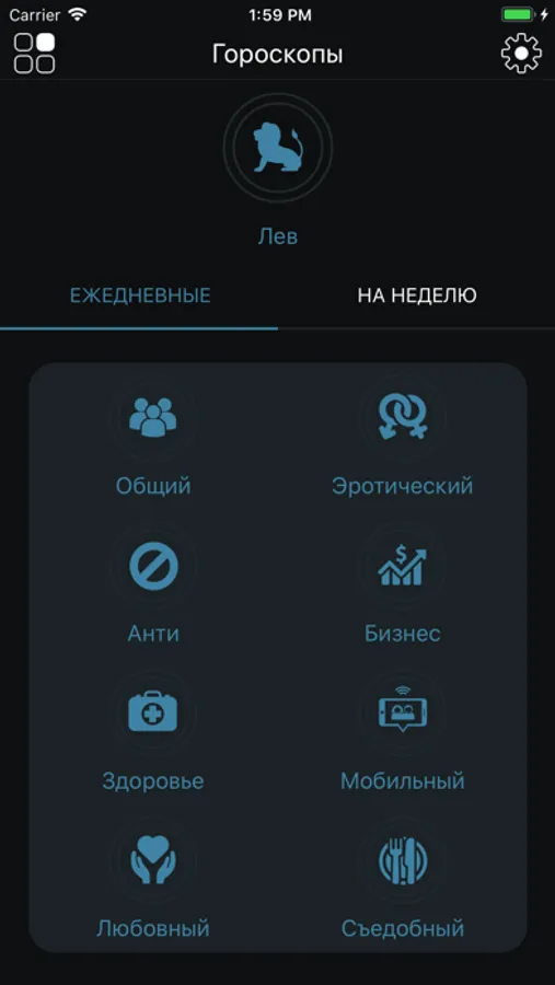 Premium-версия предоставляет доступ к ежедневным и еженедельным гороскопам различных тематик.