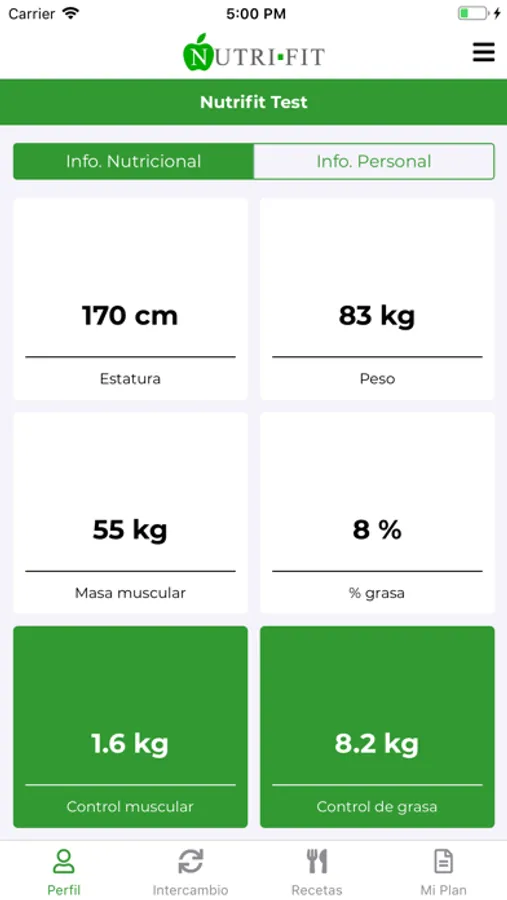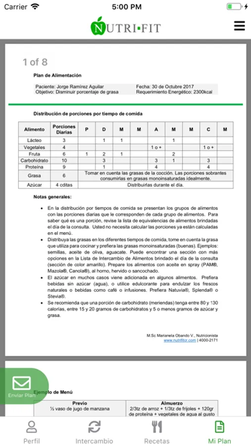Nutri Fit muestra la información nutricional de nuestros usuarios y el plan de alimentación preparado para cada uno de ellos de manera personalizada y privada.