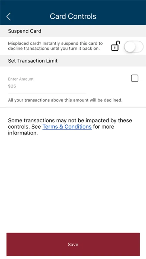 • Easily Suspend & reactivate your card, and set transaction limits