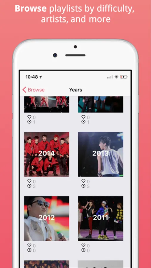 * Choose through dozens of pre-set playlists by difficulty, year, artist, or artist type