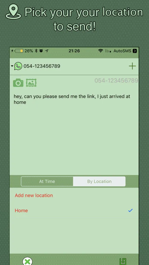 when it's time to send or you just arrived in the selected location, just Click&Send that mean you will get a push notification, when you tap on it, automatically your message will be ready to be send, just click send,