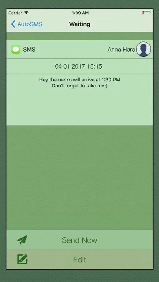 when it's time to send the message, AutoSMS will automatically copy your message and open for you messenger → all you have to do is just Paste the message and click send!