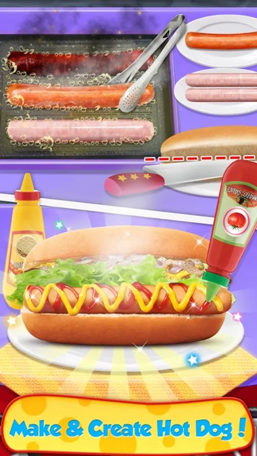 • Drag the hot dog into the pan and start cooking, don't forget to flip on time
