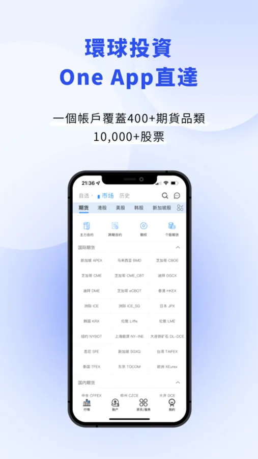 【品种繁多】拥有丰富的金融产品,为全球华人提供一体化的跨市场、多资产投资服务。交易市场覆盖美股、港股、A股等;交易品种覆盖证券、期货、外汇、涡轮、牛熊证等。