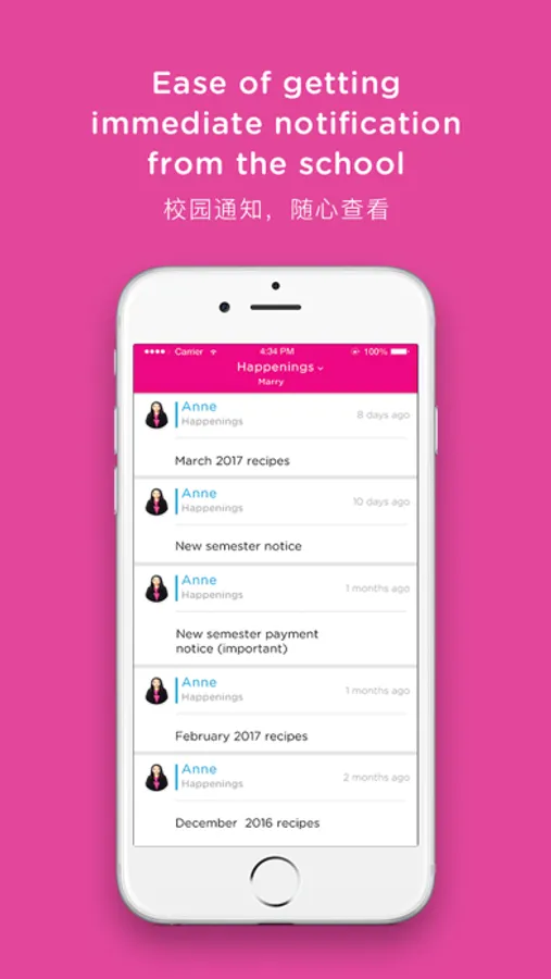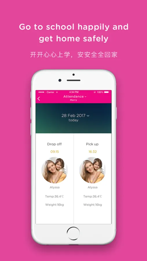 Safety and Welfare: Rest assured as we record the time your child reaches or leaves school, and keep track of the person accompanying your child. You can also conveniently access records of your child’s information such as daily temperature and weight from wherever you are.
