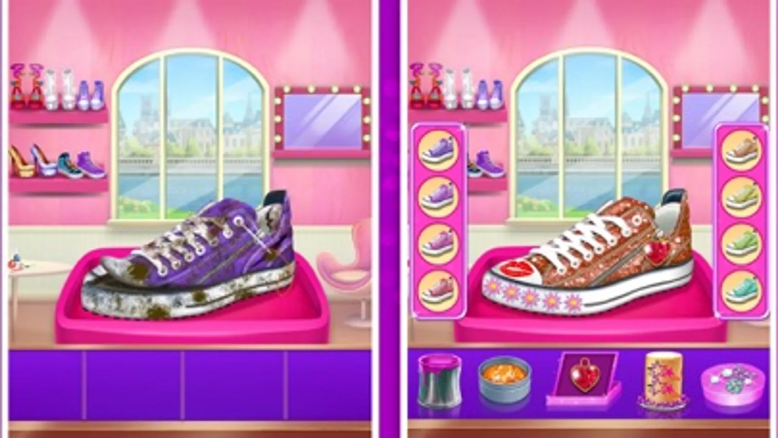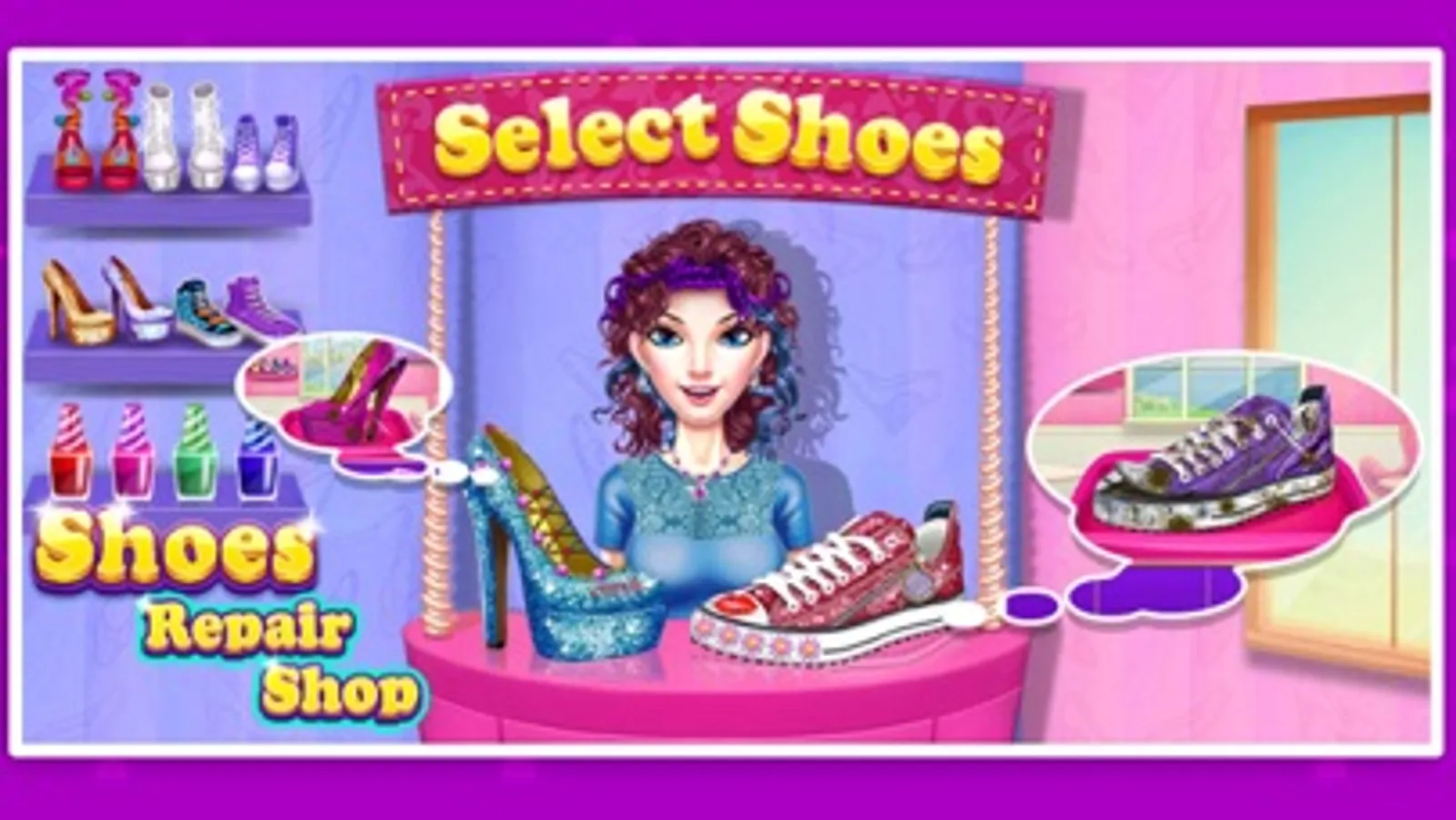 You have opened a shoe salon of your own to style up shoes of others. Your shoe salon can be the best in the kingdom! Your shoe styling work is best so all princess are standing in line for you to repair their shoes. Help Elsa, Rapunzel, Mulan, Cinderella and other princesses! Your shoe decoration style is unique in the town. Your shoe decor sense is, they guess, unique in this universe! So become the best shoemaker by playing this awesome kids game.