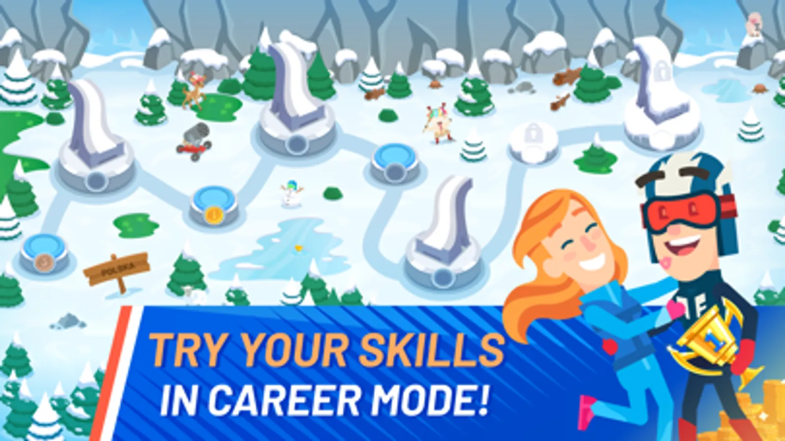- Compete on close to 90 ski jumping hills (with more coming soon) in career mode, unlock new countries and hills, spend your hard-earned money on fancy ski suits, skis and helmets!