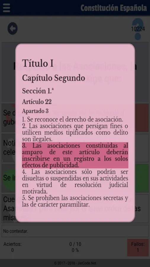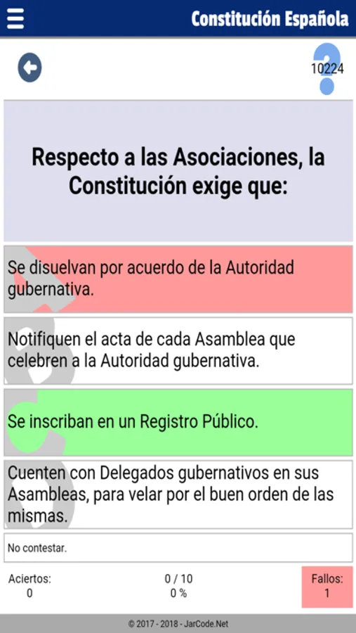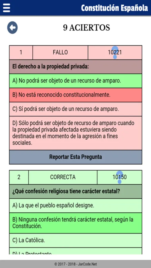 - Puedes realizar un test sólo con las preguntas que has fallado. Las preguntas en este listado se mantiene hasta que las aciertas o borras el listado manualmente.