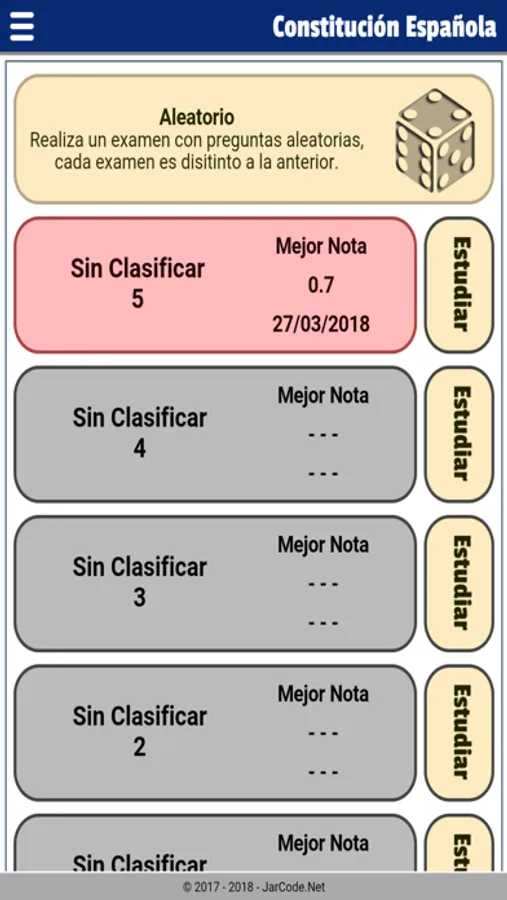 - Realizar exámenes generados aleatoriamente de los capítulos que selecciones. Al ser generados aleatoriamente tienes infinitos exámenes a tu disposición, todos ellos distintos entre si.