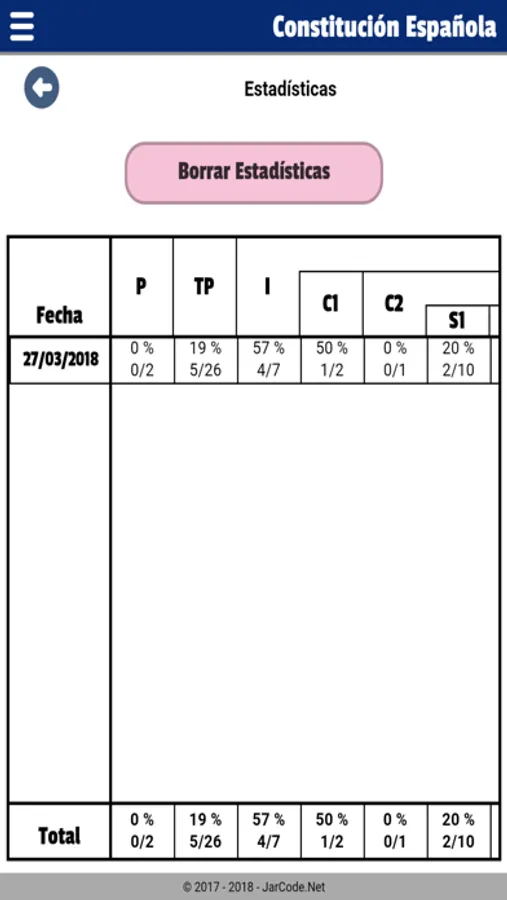 - Estadísticas para consulta la evolución de tu tasa de aciertos.