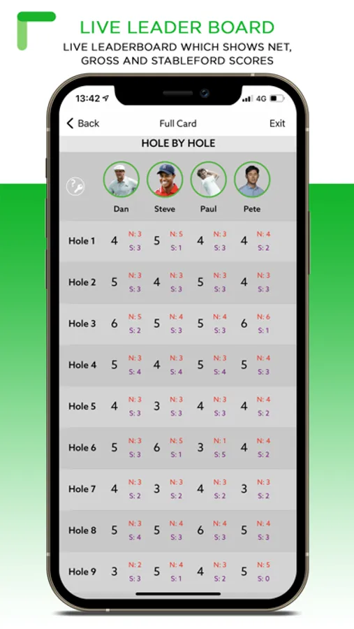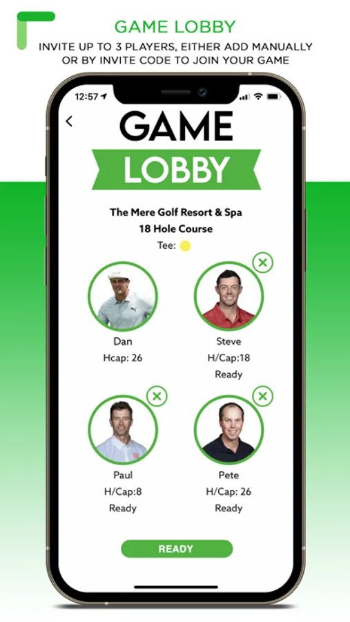 Score up to 4 players on your device, you can add manually or send a unique game code so they can score on their own device but track the leader board as the scores are entered.