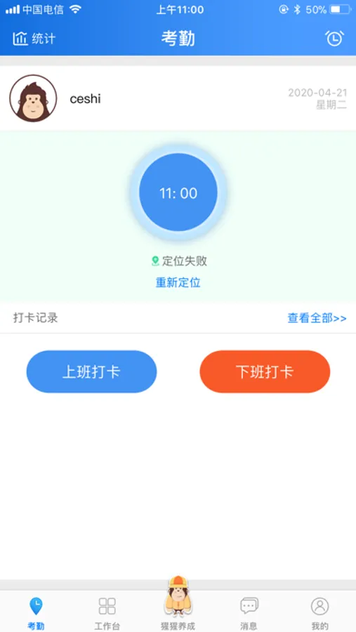 考勤:支持APP上考勤打卡、设置考勤提醒并查看考勤统计。