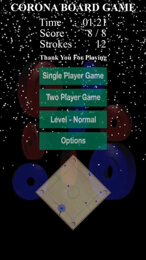 Corona is fun board game where players try to get their own pucks (usually same color that their striker is) from the opposite sides of the table to the table pockets (four pockets/jars).