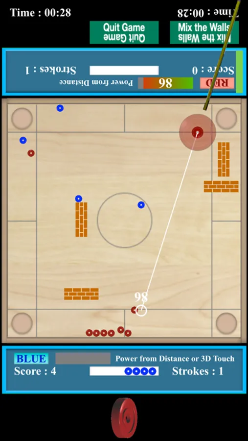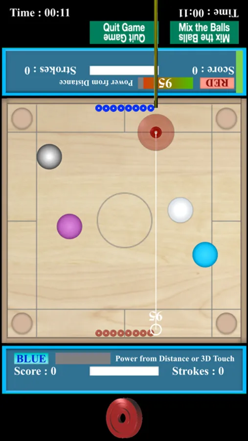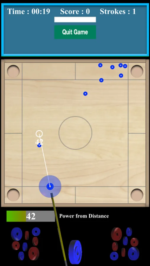 The player who first get all their own eight pucks to the pockets, is the winner.