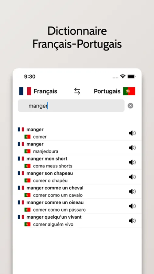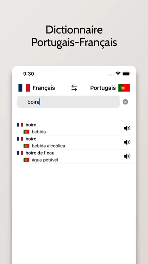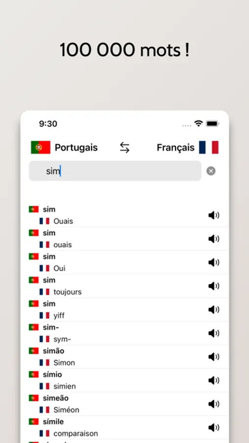 - Possibilité de rechercher à partir de mots en Français ou en Portugais