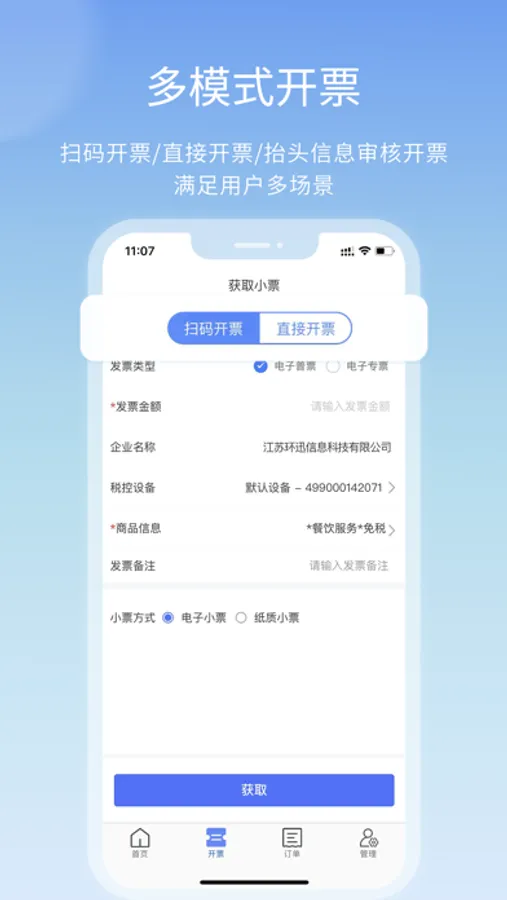 用于电子发票扫描开票的商户App客户端