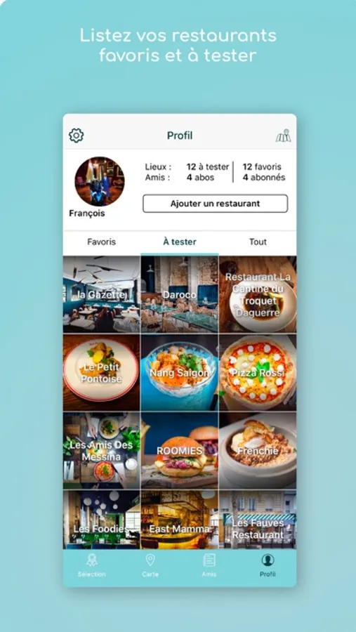 - Ajoutez vos restaurants favoris à votre profil (ces restaurants peuvent être présents ou non dans la sélection toptok)