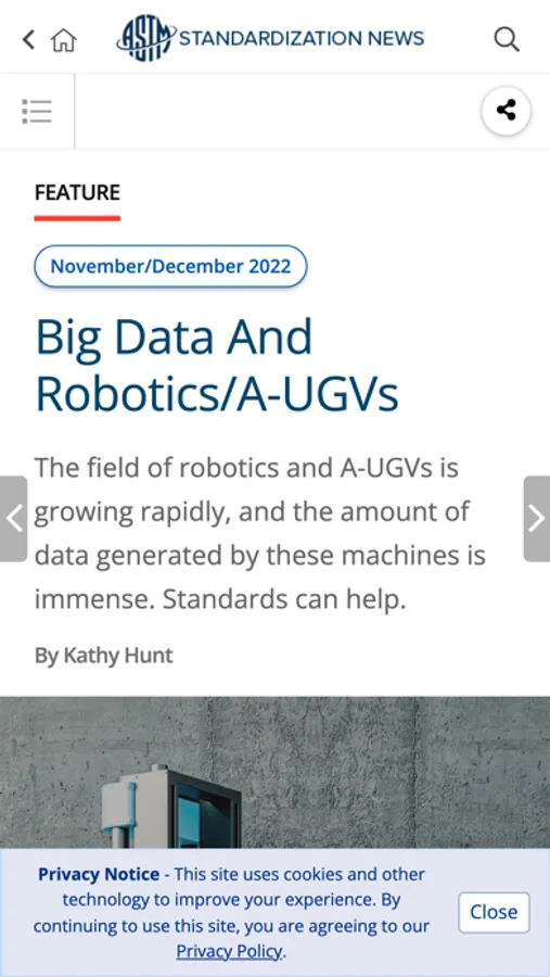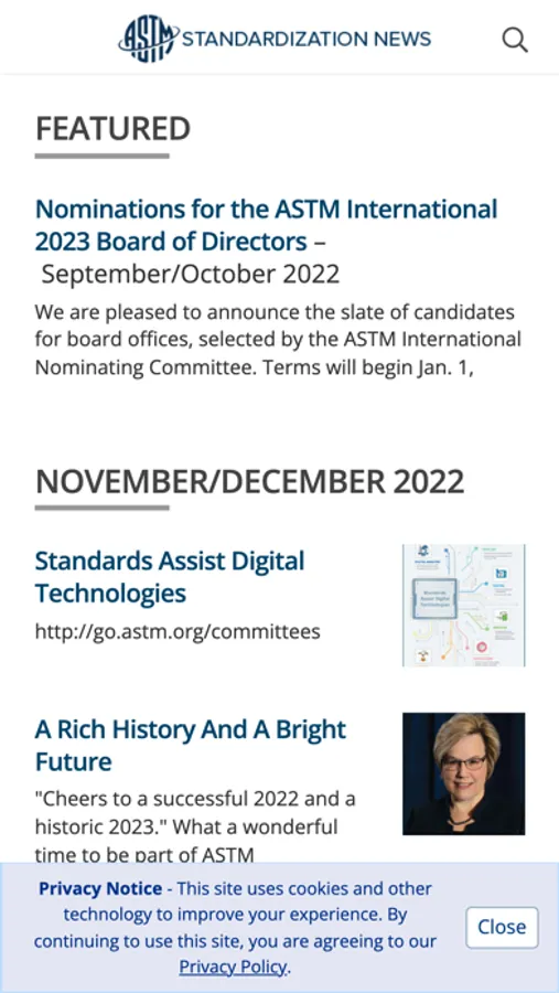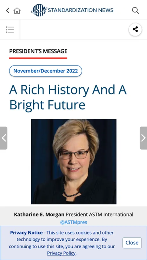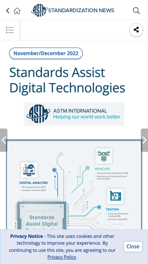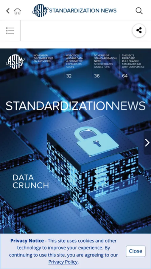 ASTM International’s award-winning magazine, Standardization News, is one of the world’s leading print and online periodicals for timely and compelling content that highlights standards-related issues. This includes standards development, standards-related products and services, the global standards community, the work of ASTM International staff and members, and more. The app is designed for ease-of-use, putting the magazine in the palm of your hand.