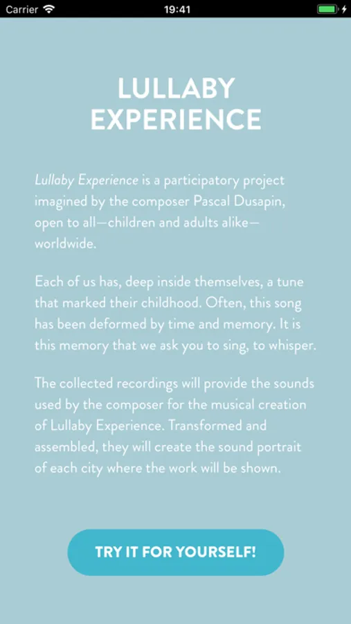 Lullaby Experience is a participatory project imagined by the composer Pascal Dusapin, open to all—children and adults alike—worldwide.