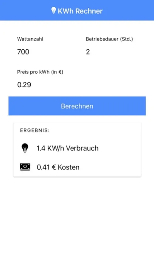 Mit dem KWh Rechner kannst du ganz einfach deine Kosten pro Gerät kalkulieren. Dafür ganz einfach die Wattzahl, Verbrauchsdauer und den aktuellen KWh Preis in den KWh Kosten Rechner eingeben.
