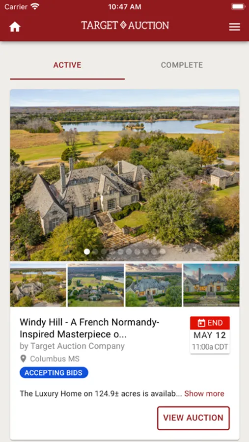 Welcome to the Target Auction mobile bidding app! This dynamic app allows you to (1) stay informed about our upcoming auctions; (2) watch items that interest you; (3) get notifications when you’ve been outbid; (4) bid in our auctions no matter where you have to be (or set and forget your maximum bid to let our platform automatically bid the lowest possible winning bid for you). This is the go-to-source for up-to-the-minute information on all of our auctions.