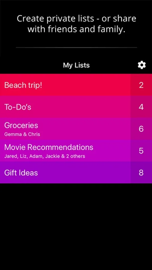 Lists don't have to be hard, confusing, or time-consuming. They can be simple and beautiful - and just work. It shouldn't matter if you're just keeping track of your own to-dos, or planning a getaway using a shared list with your family and friends.