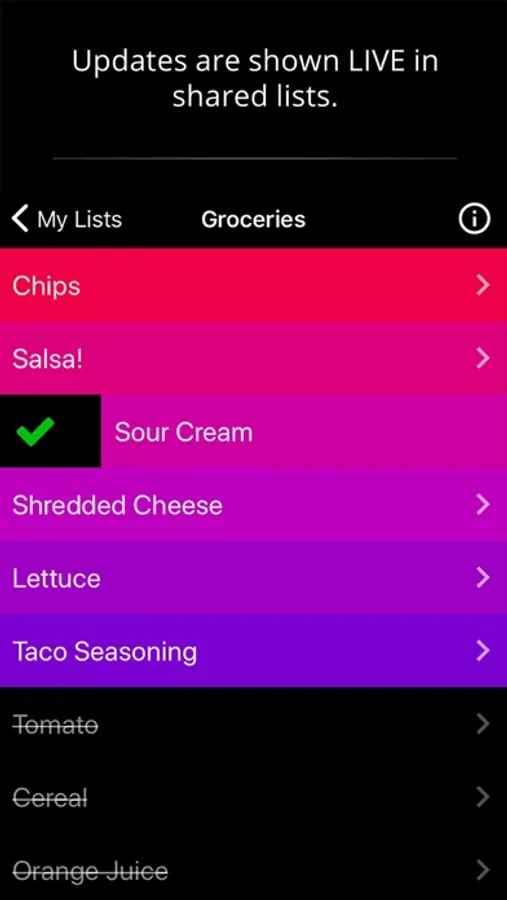 If everyone had OurList, you can all see the same list no matter where you are in the store! Once dad tracks down the quinoa, he can cross it off the list, and mom will see the update immediately over in aisle 4.
