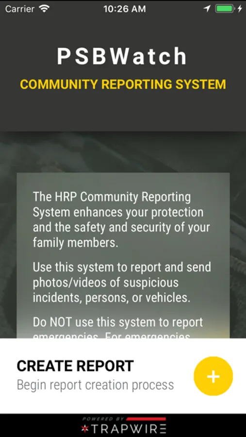 With the PSB Watch app, you can report suspicious activities and incidents that may be indicators of terrorist or other criminal intent directly to the Protective Services Bureau. Every report will be reviewed by analysts at the PSB.